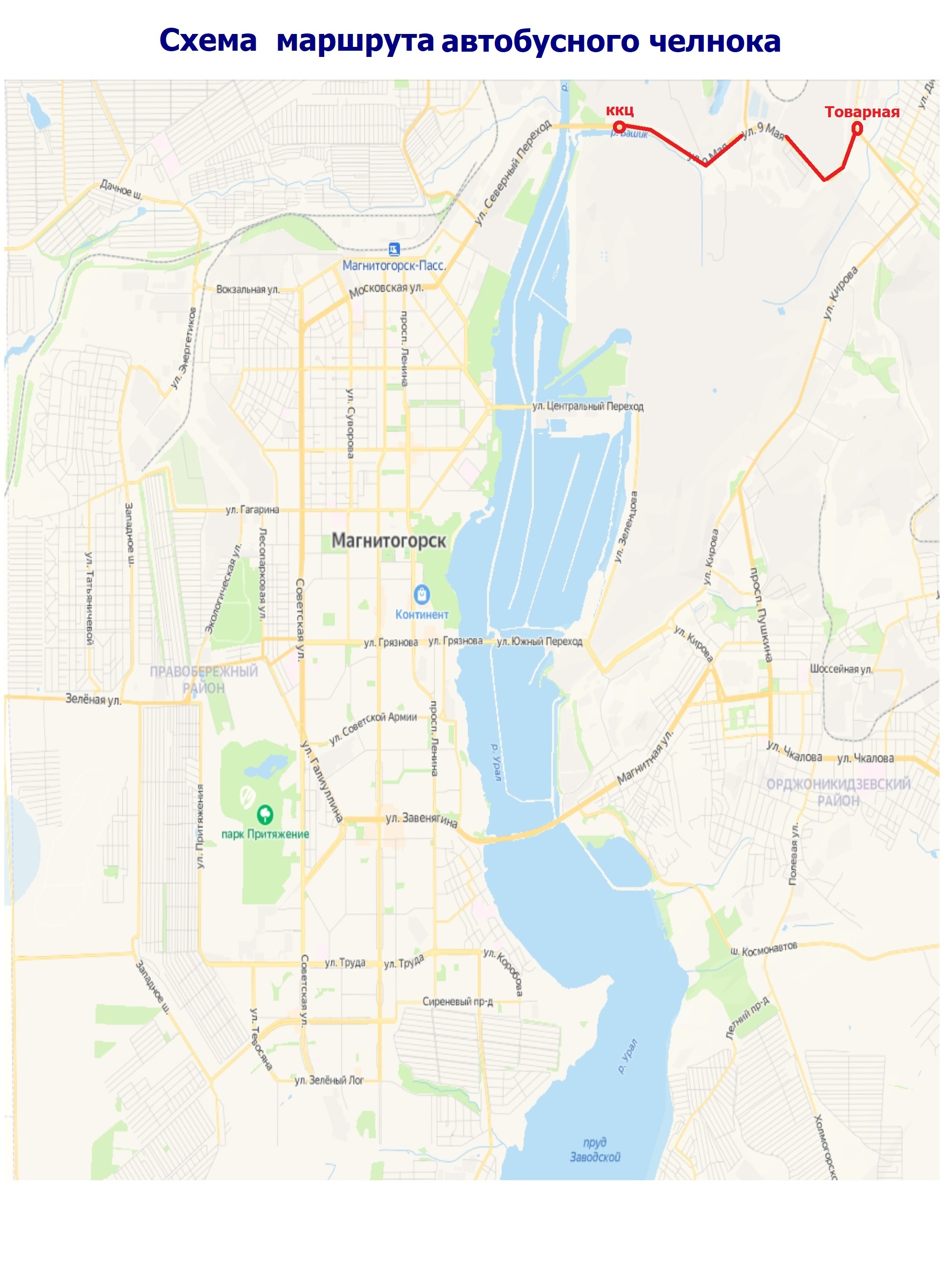 Маршрут № 64 (челнок) – Товарная – 8-ая проходная – МКЗ – 14 участок – Гранитная – Среднеуральская – ККЦ и обратно.
