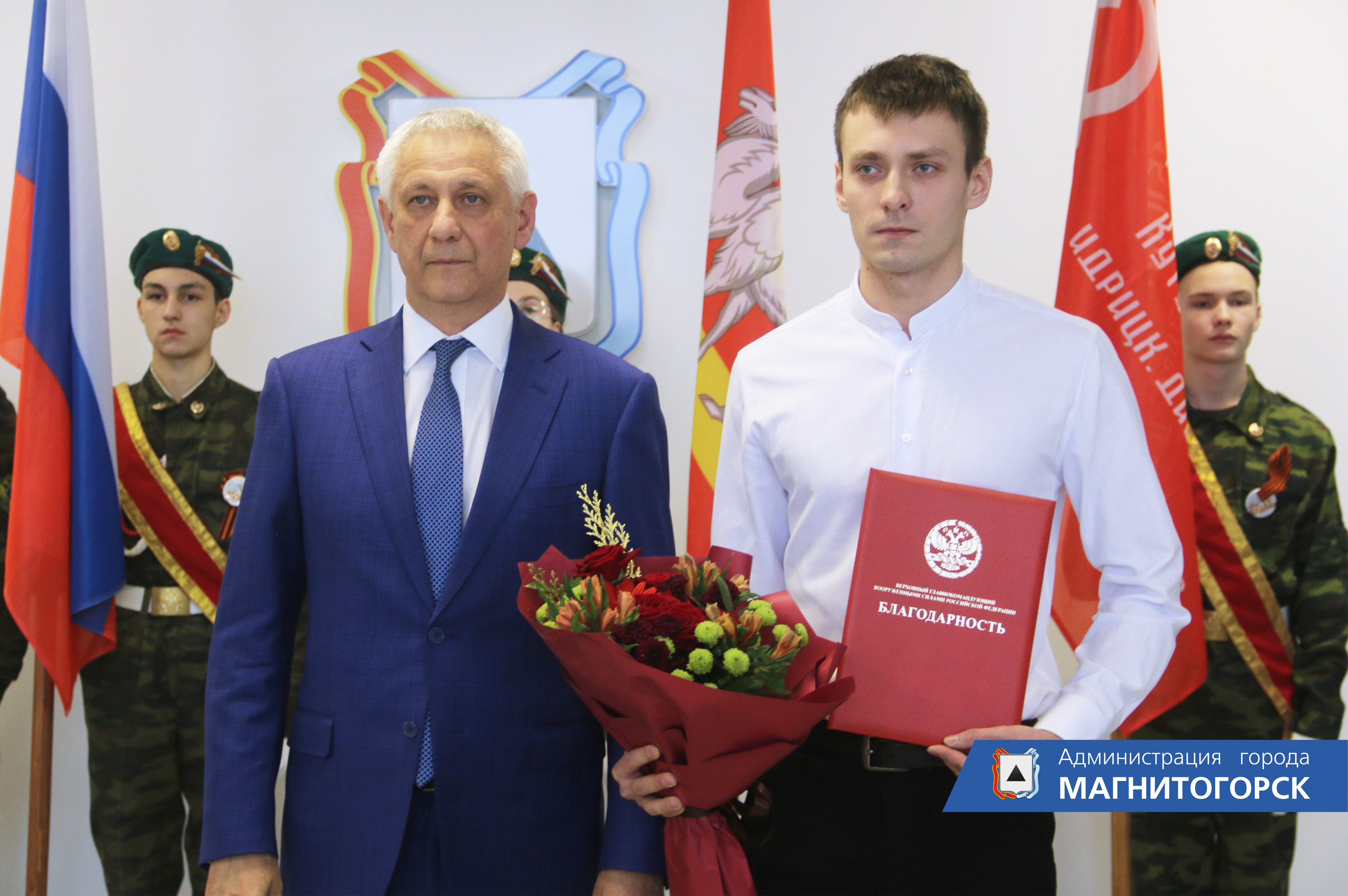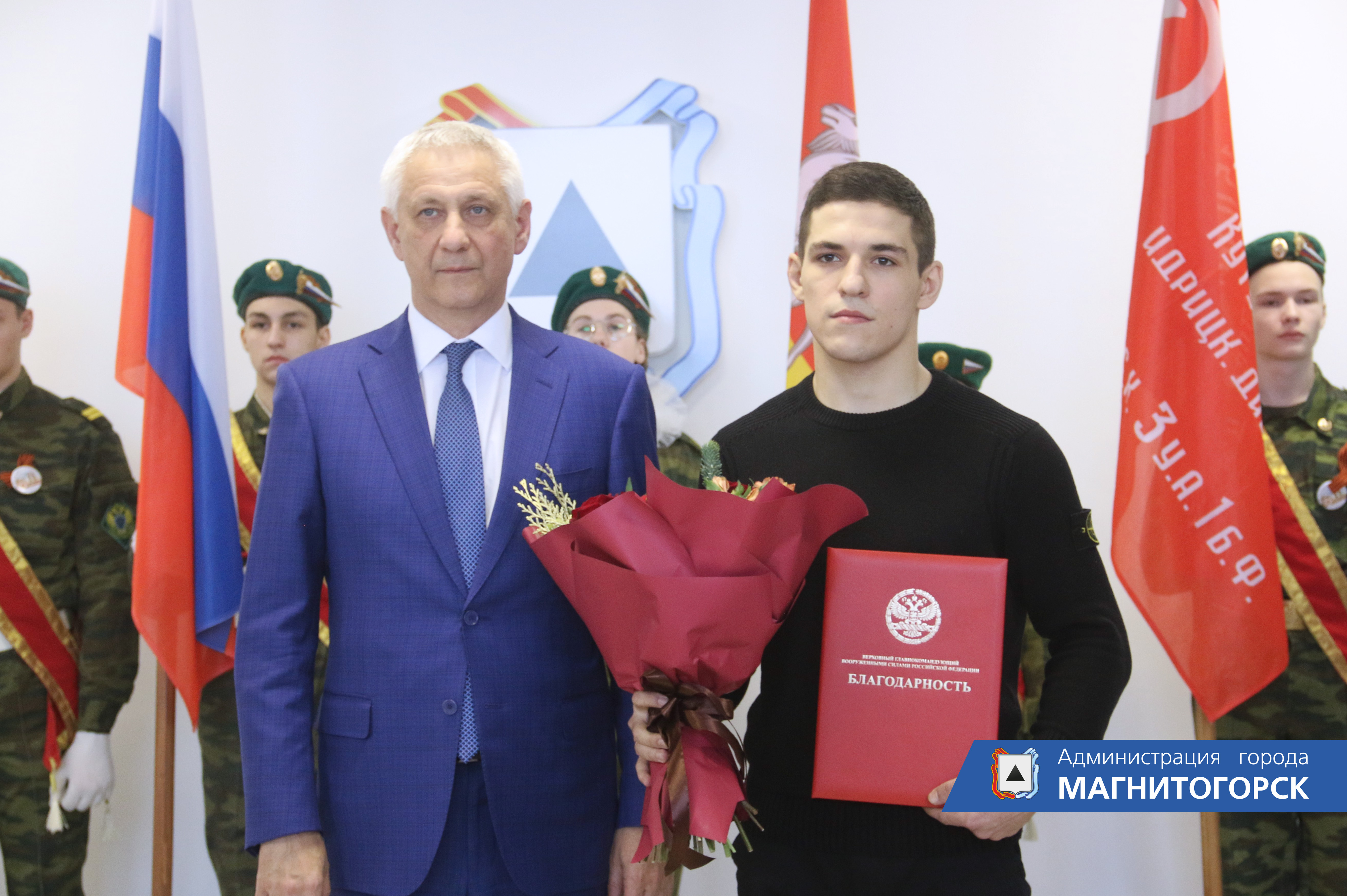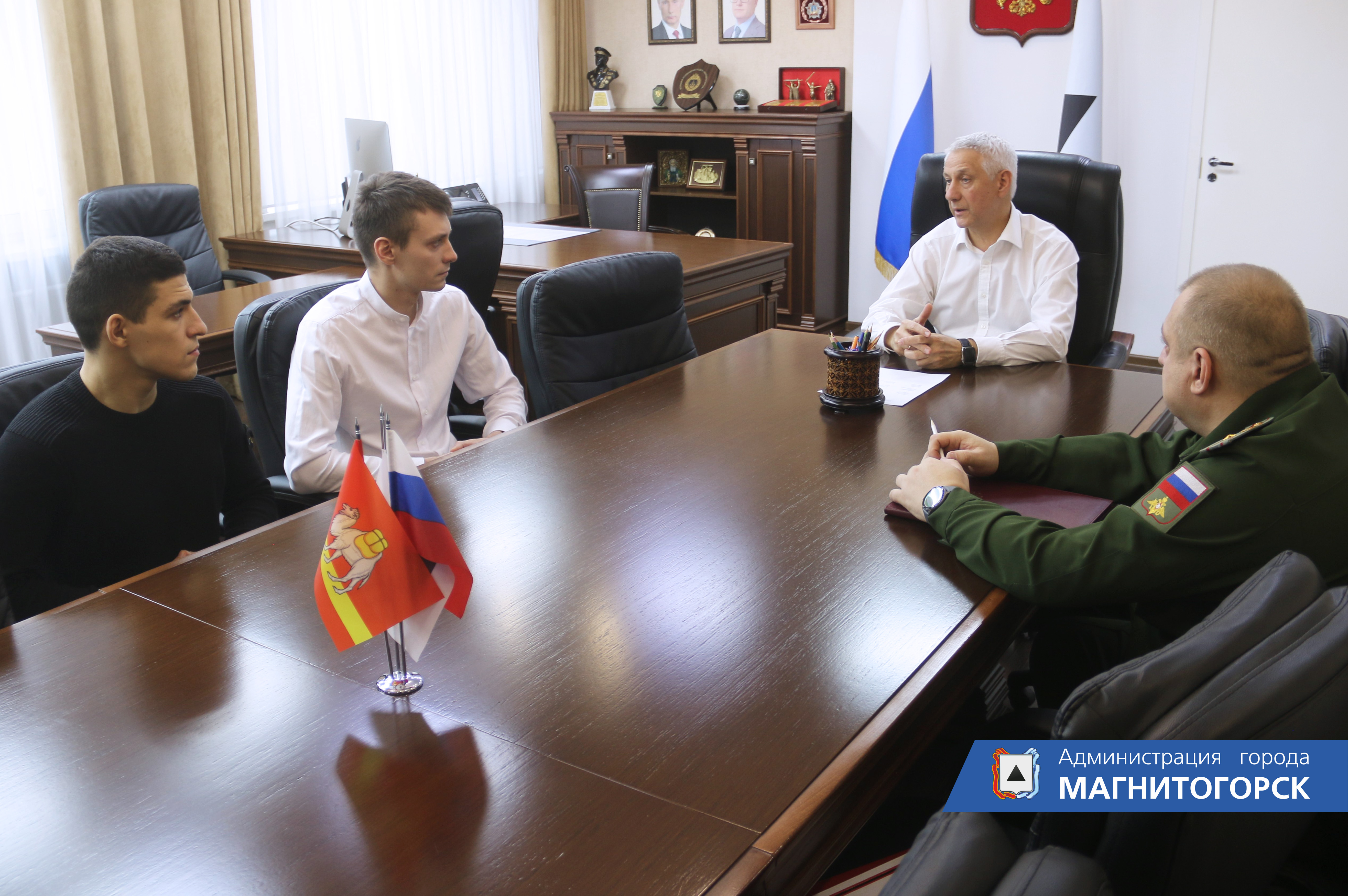 Глава города Сергей Бердников вручил благодарственные письма Верховного Главнокомандующего Вооруженными Силами РФ Владимира Путина магнитогорцам – участникам специальной военной операции на Украине.