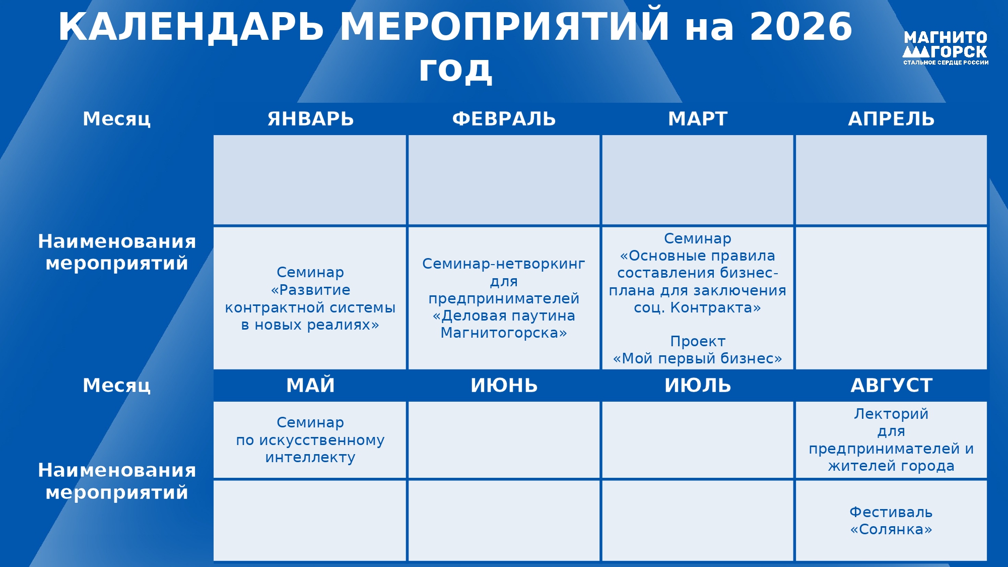 ВНИМАНИЕ! Даты мероприятий могут измениться! За обновлениями также можно следить в сообществе "Поддержка бизнеса в Магнитогорске"