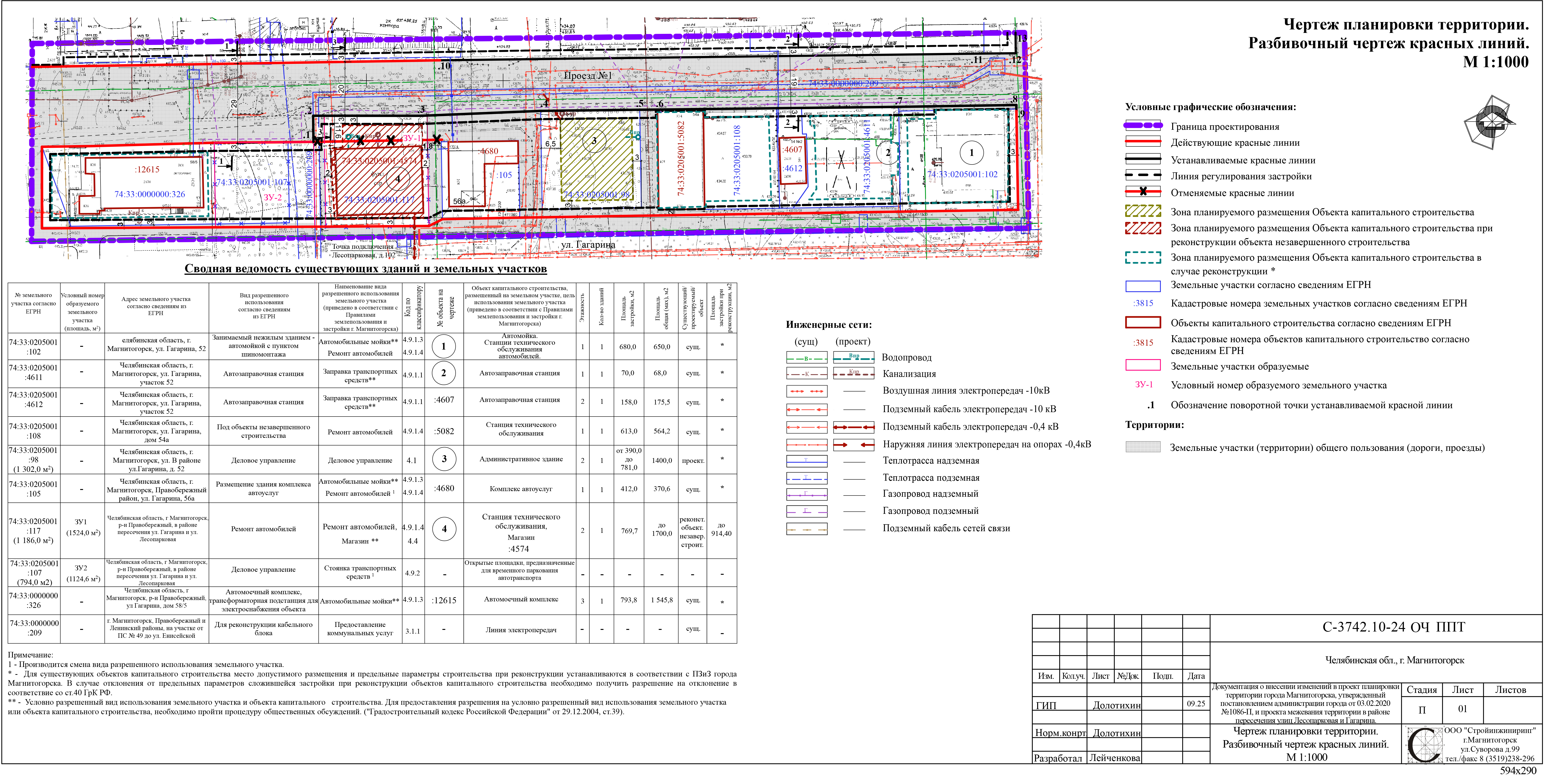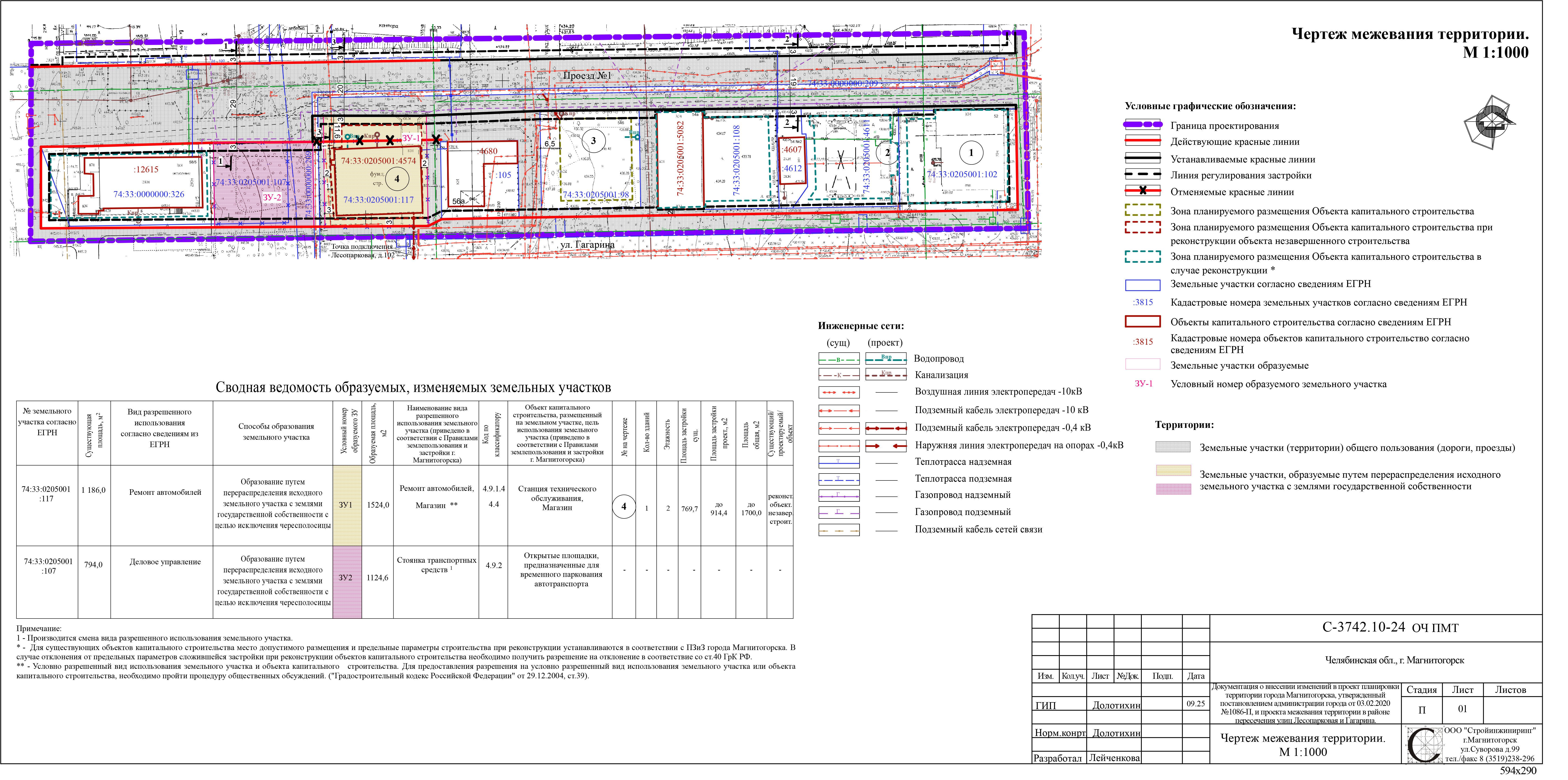Документация о внесении изменений в проект планировки территории города Магнитогорска, утвержденный постановлением администрации города от 03.02.2020 №1086-П, и проекта межевания территории в районе пересечения улиц Лесопарковая и Гагарина