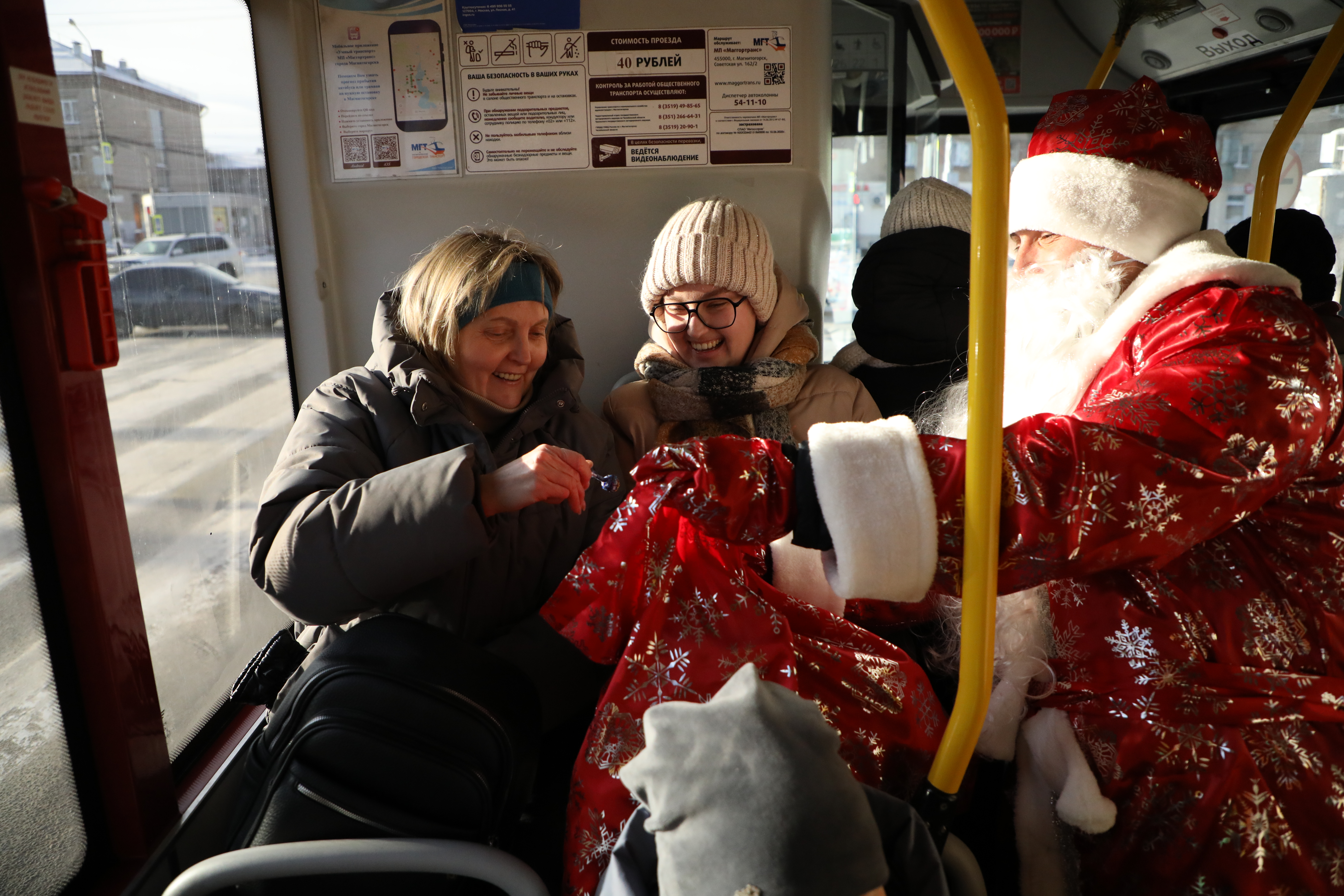 Новогодняя атмосфера постепенно охватывает весь город, и даже привычный общественный транспорт преображается в настоящую праздничную феерию. Жители Магнитогорска могут встретить настоящего Деда Мороза прямо в городском автобусе!