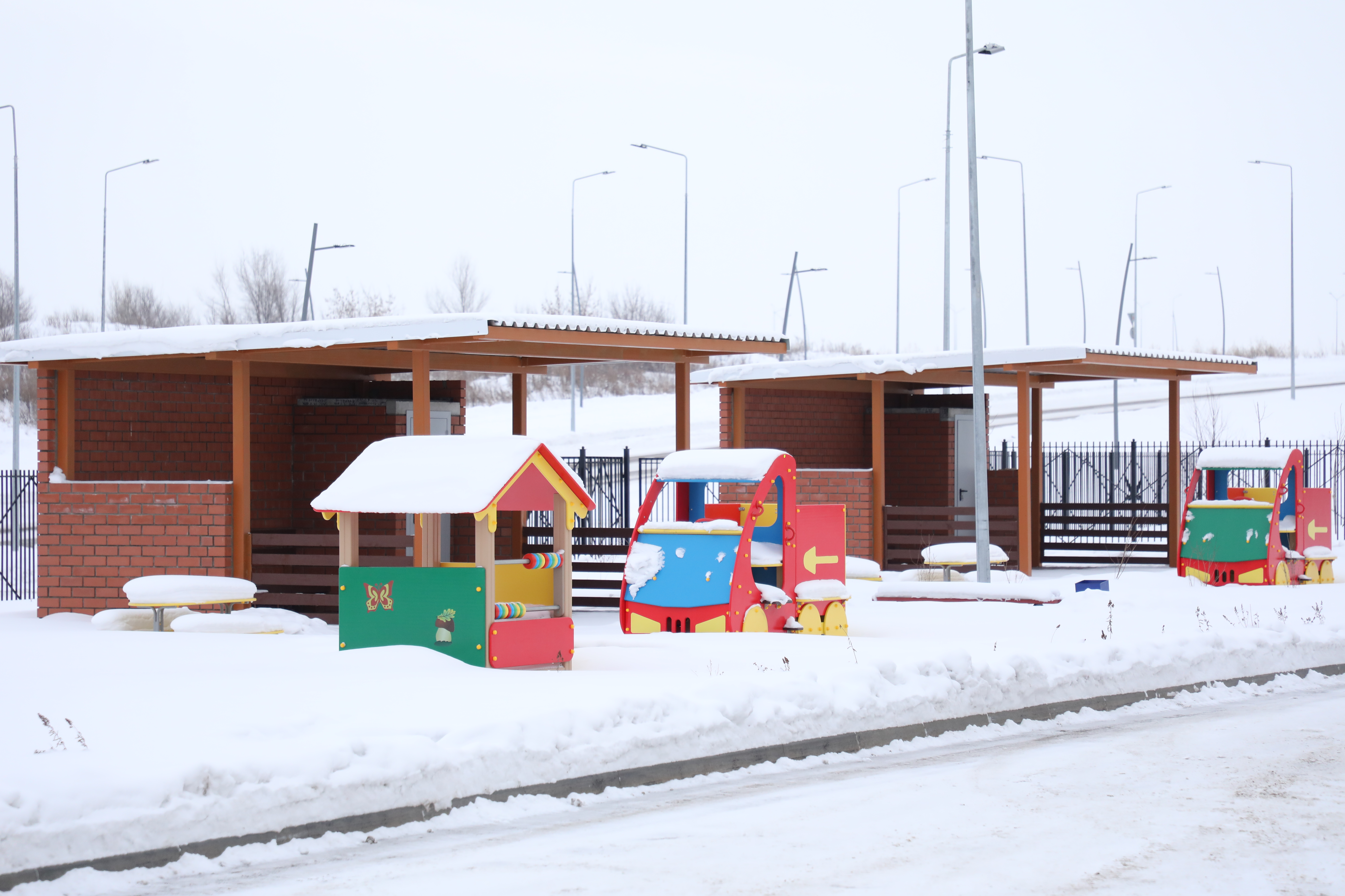 Все необходимые условия созданы и на уличных площадках. По словам генерального подрядчика – исполнительного директора ООО «Спецтехника» Александра Печкарева, территория оборудована теневыми навесами, песочницами, архитектурными формами. Есть даже футбольное поле.