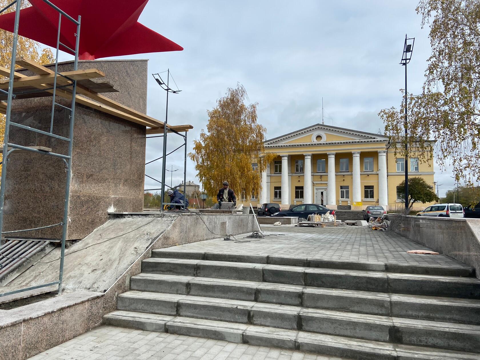 На постаменте уже сейчас установлены две надписи: «Никто не забыт» и «Ничто не забыто», плиты с именами железнодорожников, которые участвовали в ВОВ, рельсы, символизирующие железную дорогу, а также оборудован вечный огонь, к которому проведен газ. Кроме того, уложена плитка вокруг дворца, проведено освещение, все коммуникации проходят под землей. Напомним, что зимой здесь традиционно устанавливается новогодняя елка, строится ледовый городок и проводятся народные гуляния.