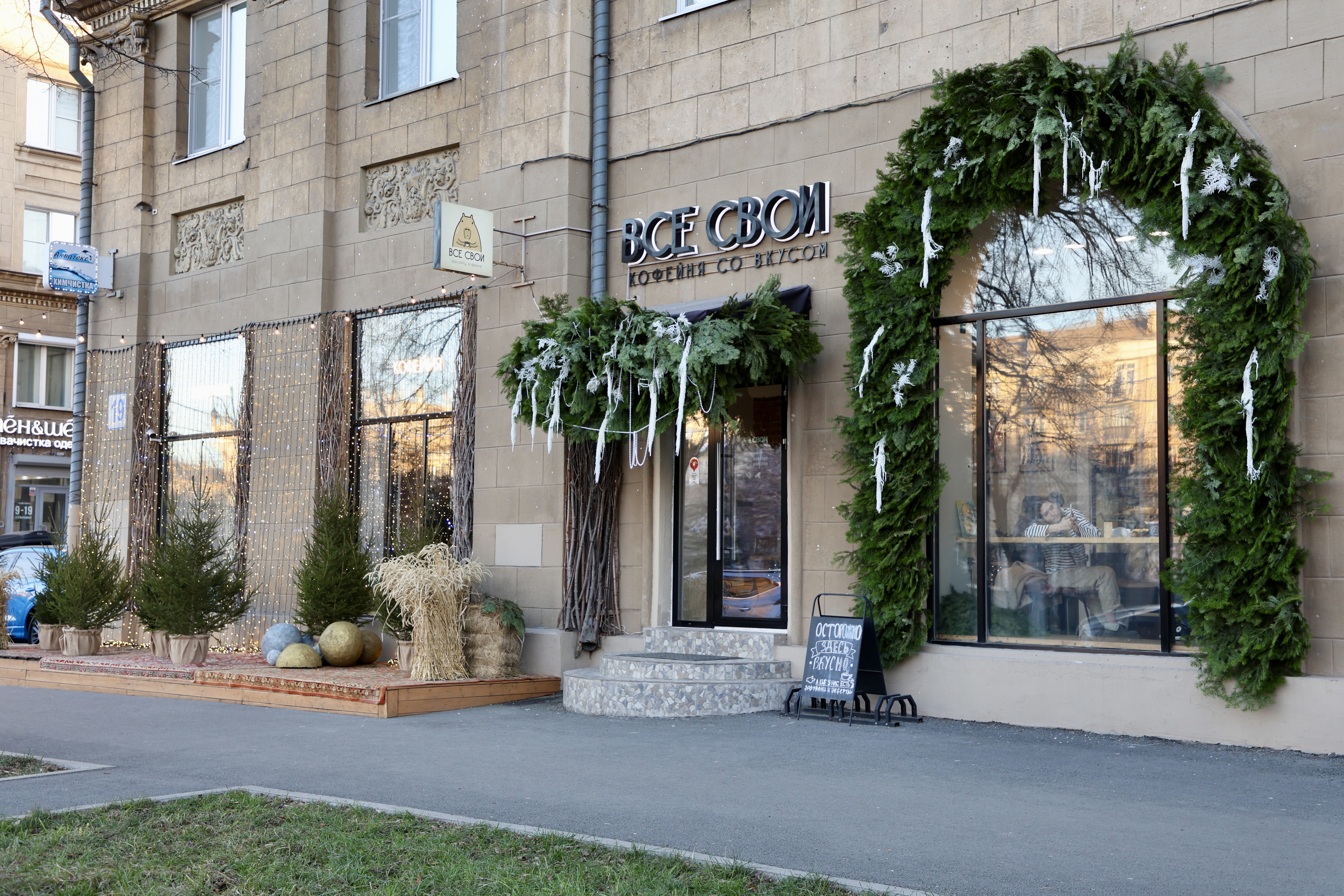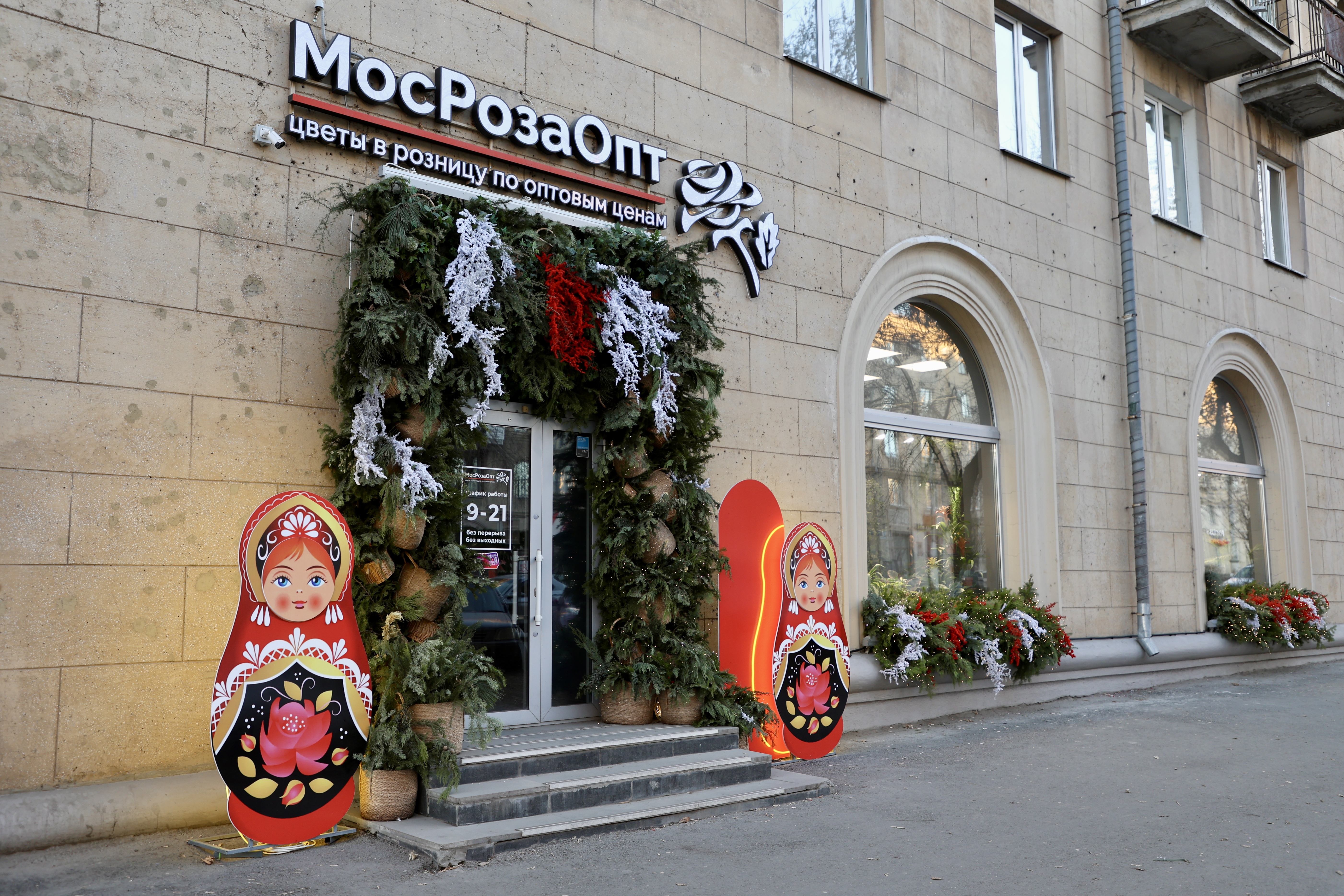 Для владелицы цветочного салона Елены Запускаловой наряжать фасады в праздничное убранство стало традицией. В этот раз входную группу украсили объемными хвойными ветками и новогодними шарами.