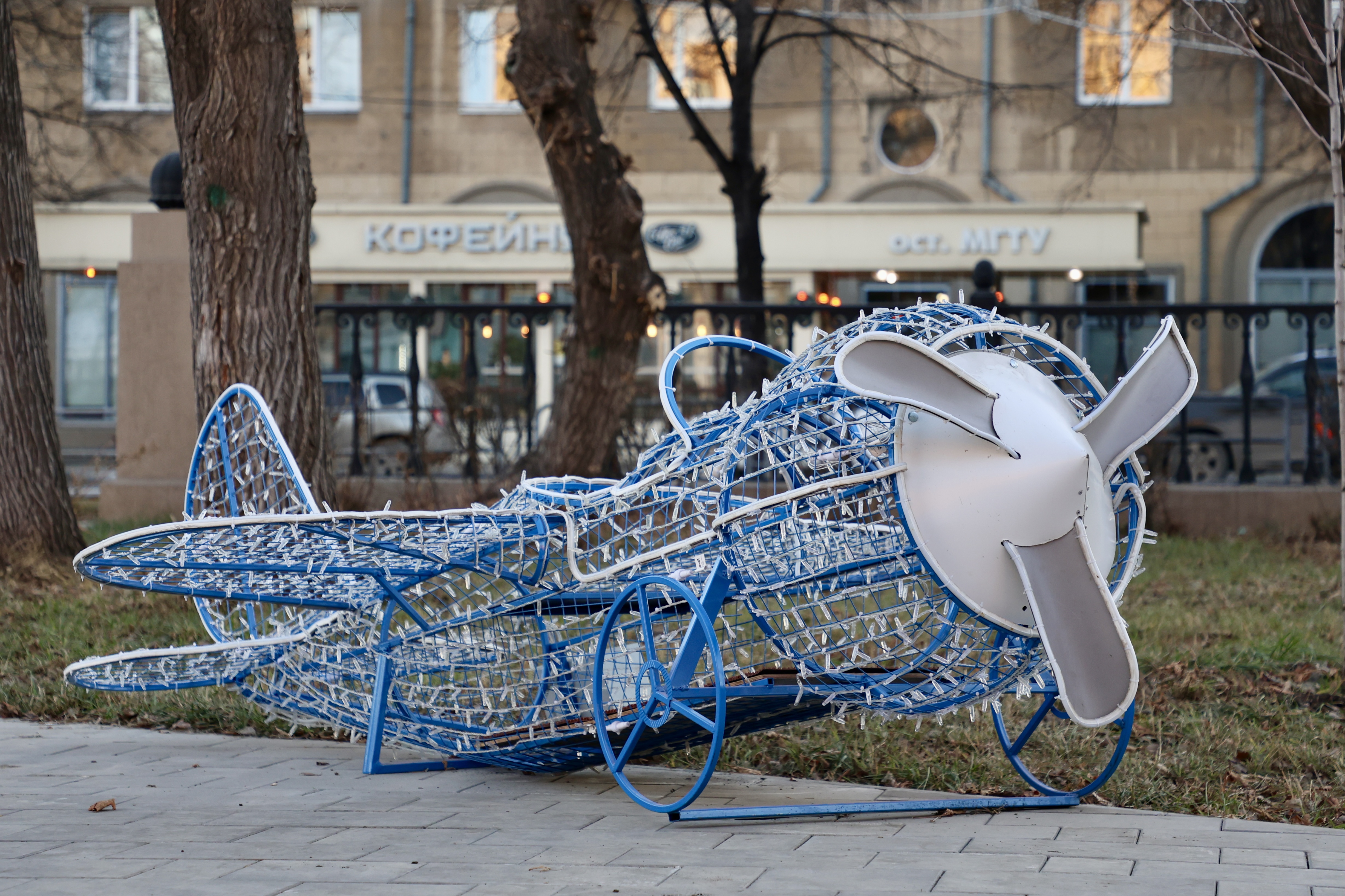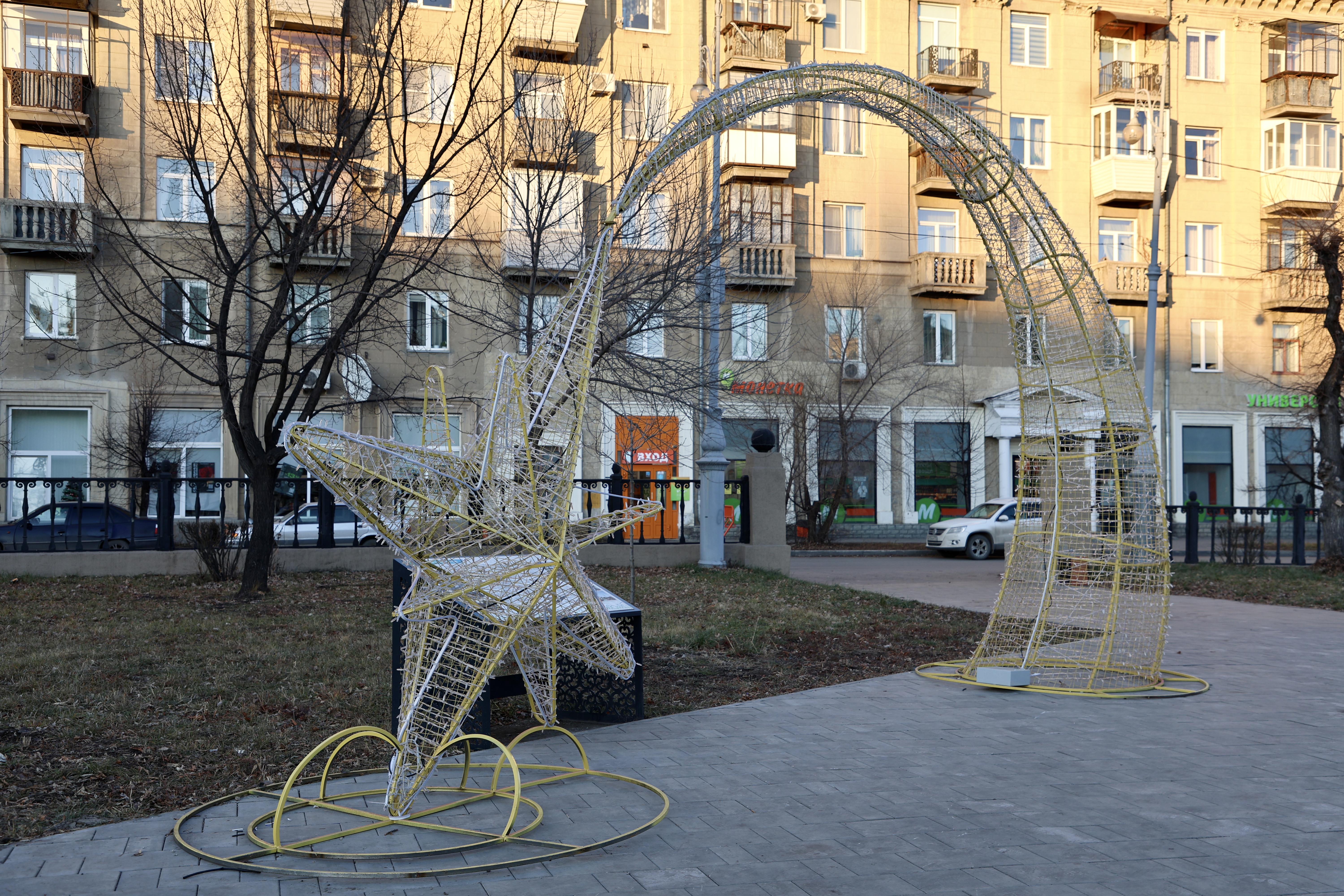 Воздушный шар, рождественские фонари, сказочный самолет – эти и другие светодиодные фигуры установлены в одном из живописных уголков Ленинского района – сквере Металлургов. Рядом с входной группой возвышается новогодняя ель, украшенная золотыми шарами, – общественное пространство нарядили к новогодним праздникам.