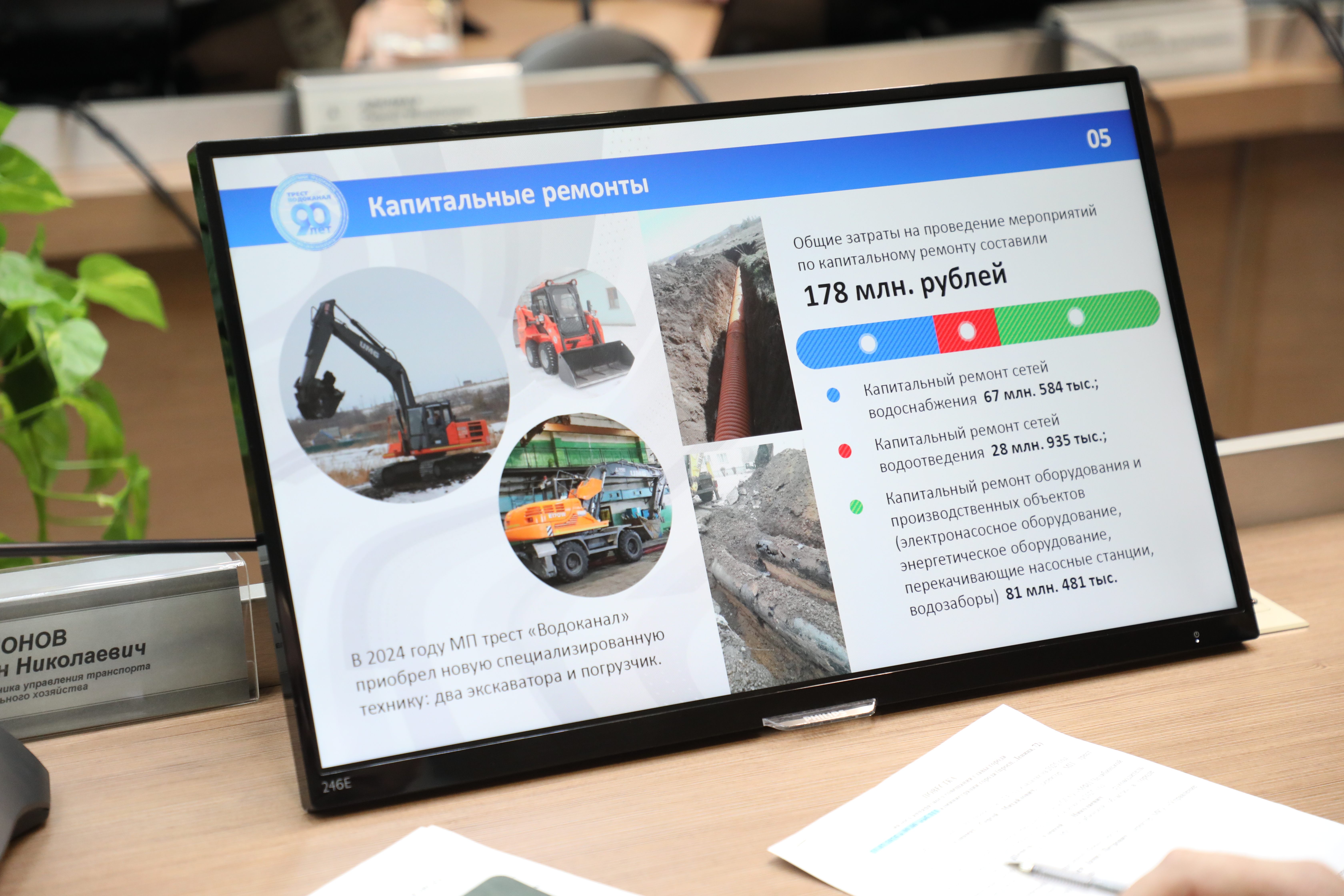 По словам директора предприятия, в рамках реализации производственной программы в 2024 году заменено почти 7,5 км сетей, отремонтированы 278 водопроводных и 187 канализационных колодца, 395 единицы запорной арматуры, 194 пожарных гидрантов, 110 водоколонок. В 2024 году проведены масштабные работы по замене аварийных участков магистральных водоводов общей протяженностью 608 метров. Проведен капитальный ремонт участков общей протяженностью 1,4 км и на сетях бытовой канализации. Ежегодно в рамках производственной программы проводится капитальный ремонт выпусков канализации. В отчетном году ремонт выполнен на 31 объекте общей протяженностью 240 метров.