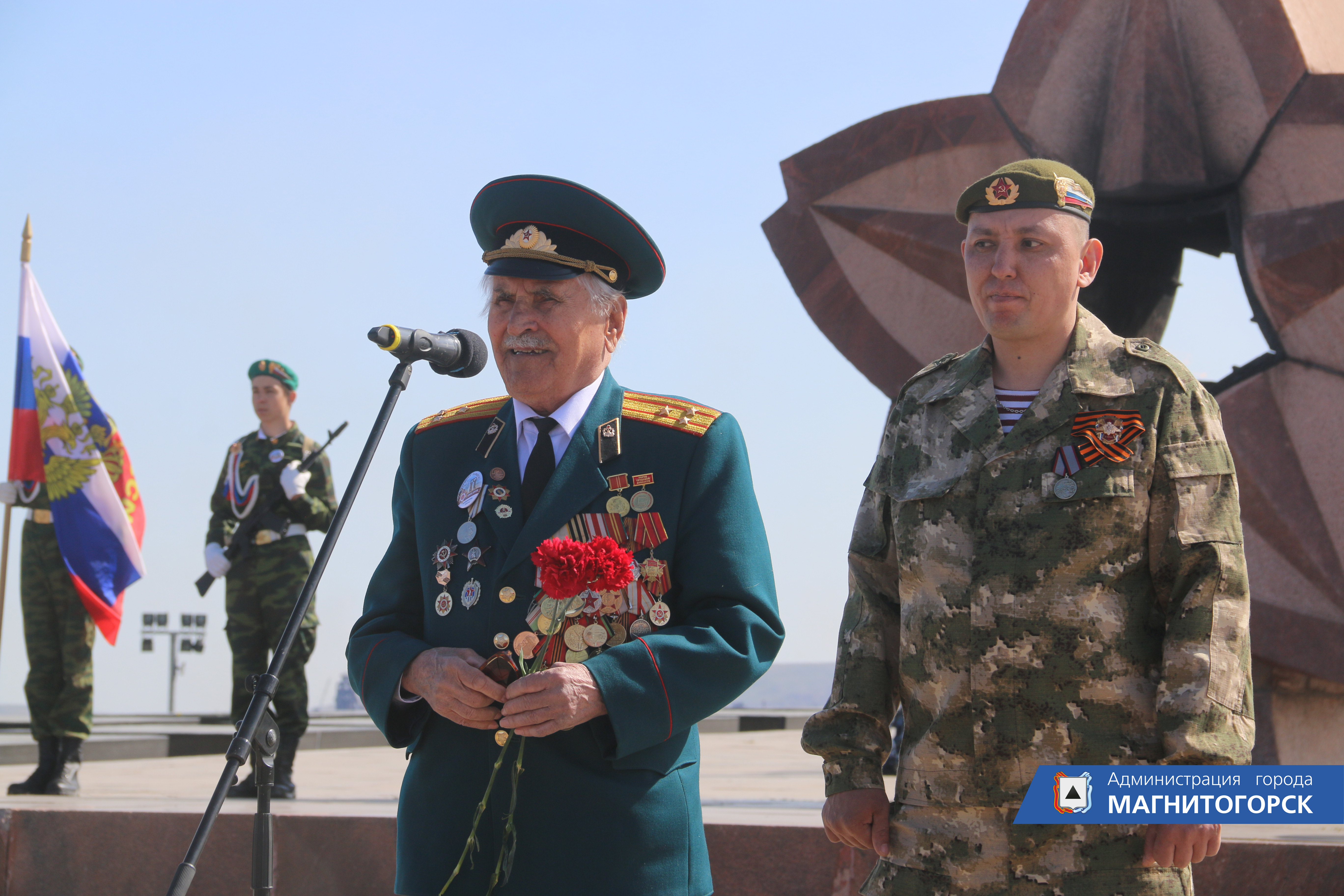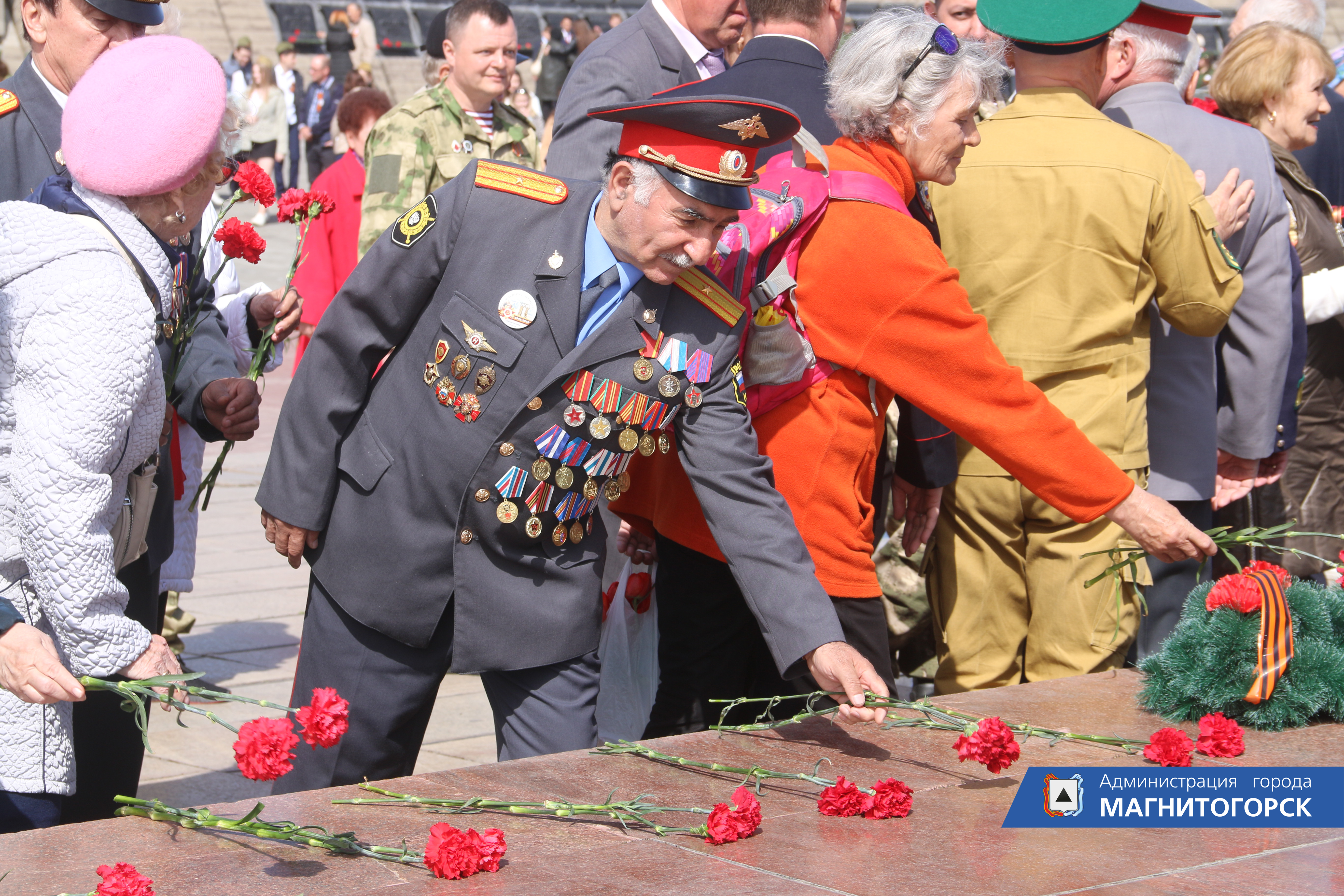 В завершении торжественного мероприятия к подножию монумента «Тыл – фронту» традиционно была возложена гирлянда памяти в знак благодарности и преклонения перед теми, кто отдал жизнь в борьбе за мир. Также участники возложили цветы к памятным плитам Героев Советского Союза, участникам Великой Отечественной войны и мемориальным плитам, где высечены имена более 14 тысяч магнитогорцев, погибших в годы Великой Отечественной войны.