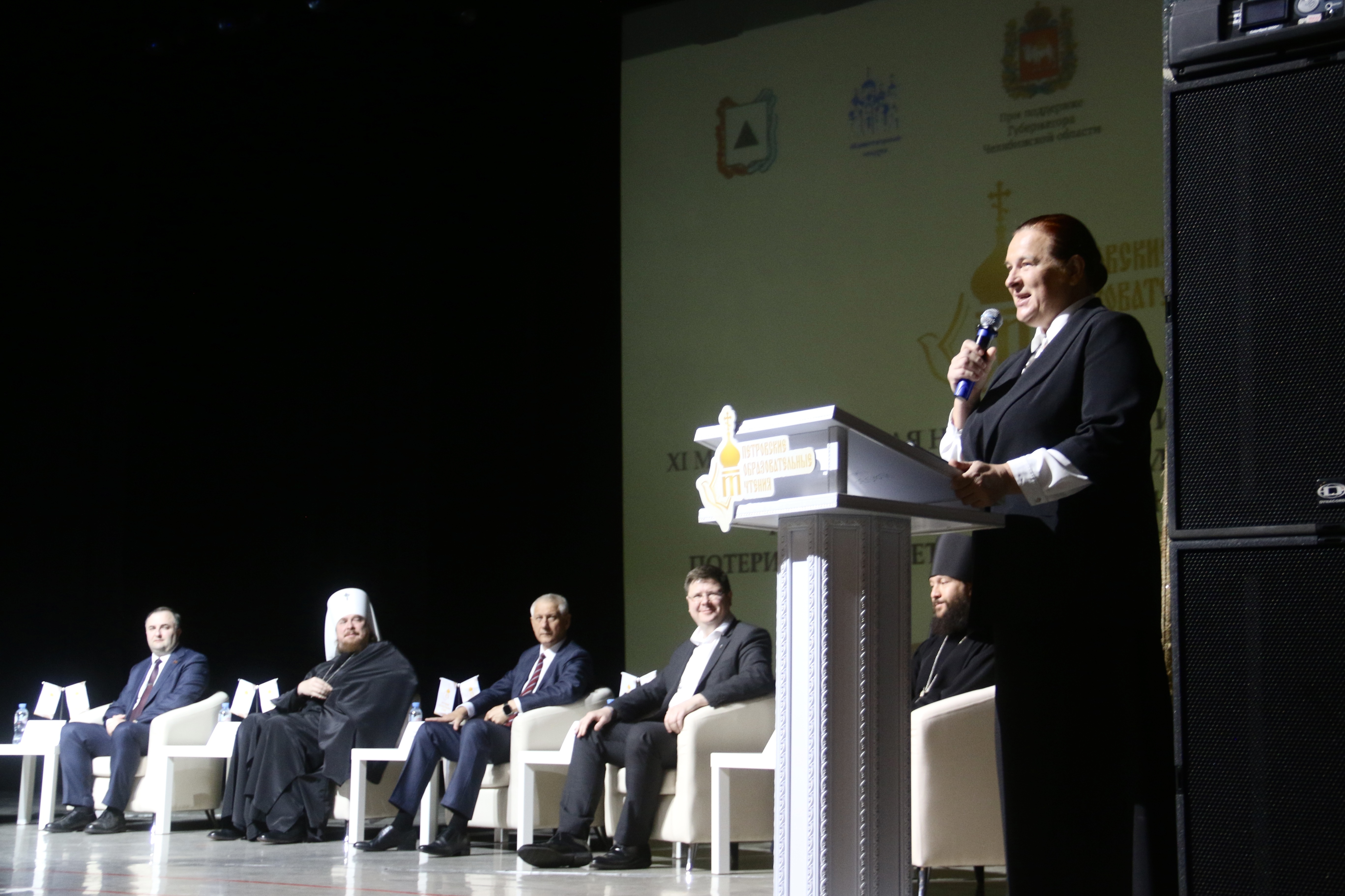 Затем на сцену пригласили ведущего научного сотрудника отдела правоведения Института научной информации по общественным наукам Российской академии наук, президента Центра «Право мира» и Международного фонда «Дорога мира» Ирину Умнову-Конюхову. Ирина Анатольевна представила участникам конференции доклад на тему: «Православие и отечественная культура: потери и приобретения минувшего, образ будущего».