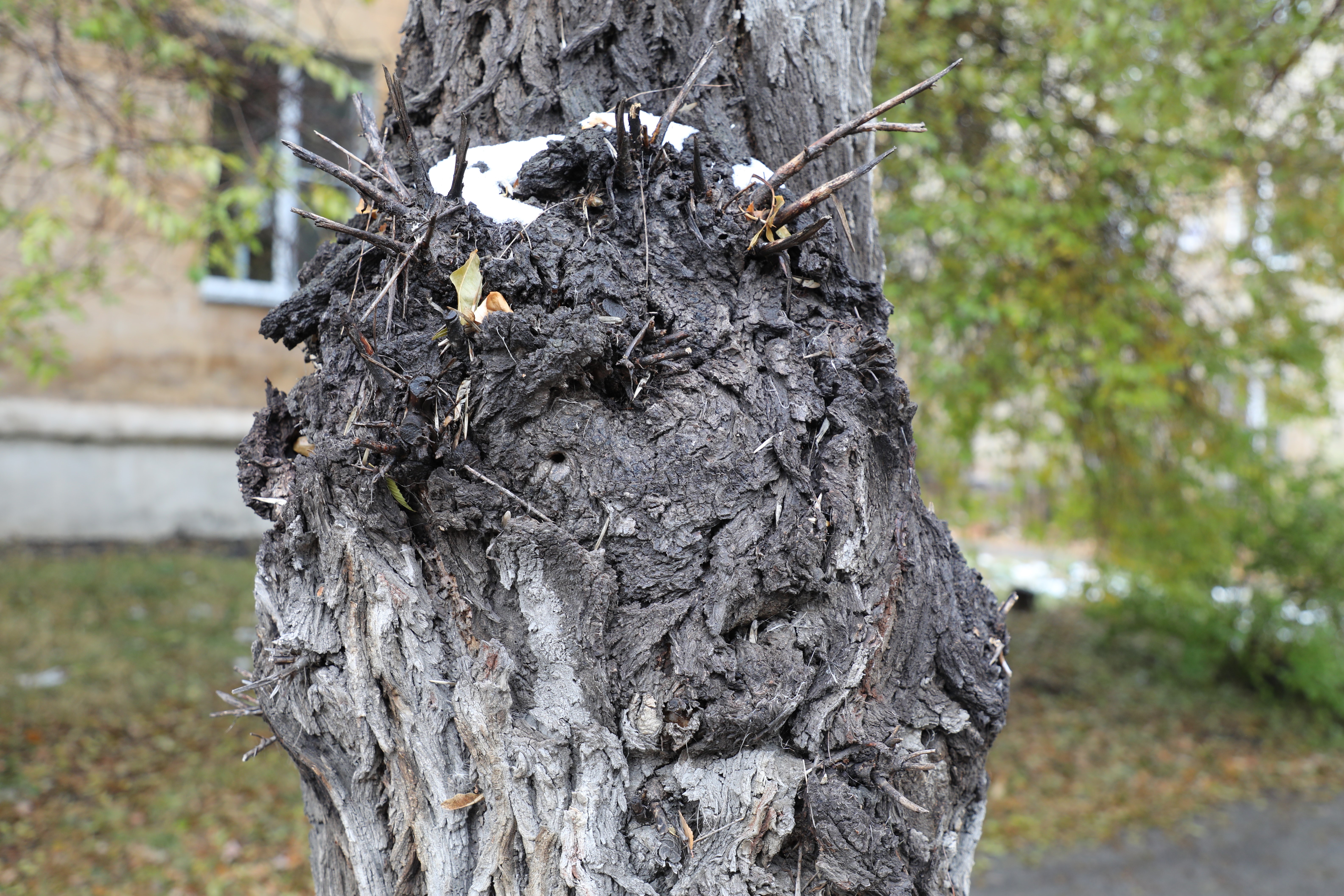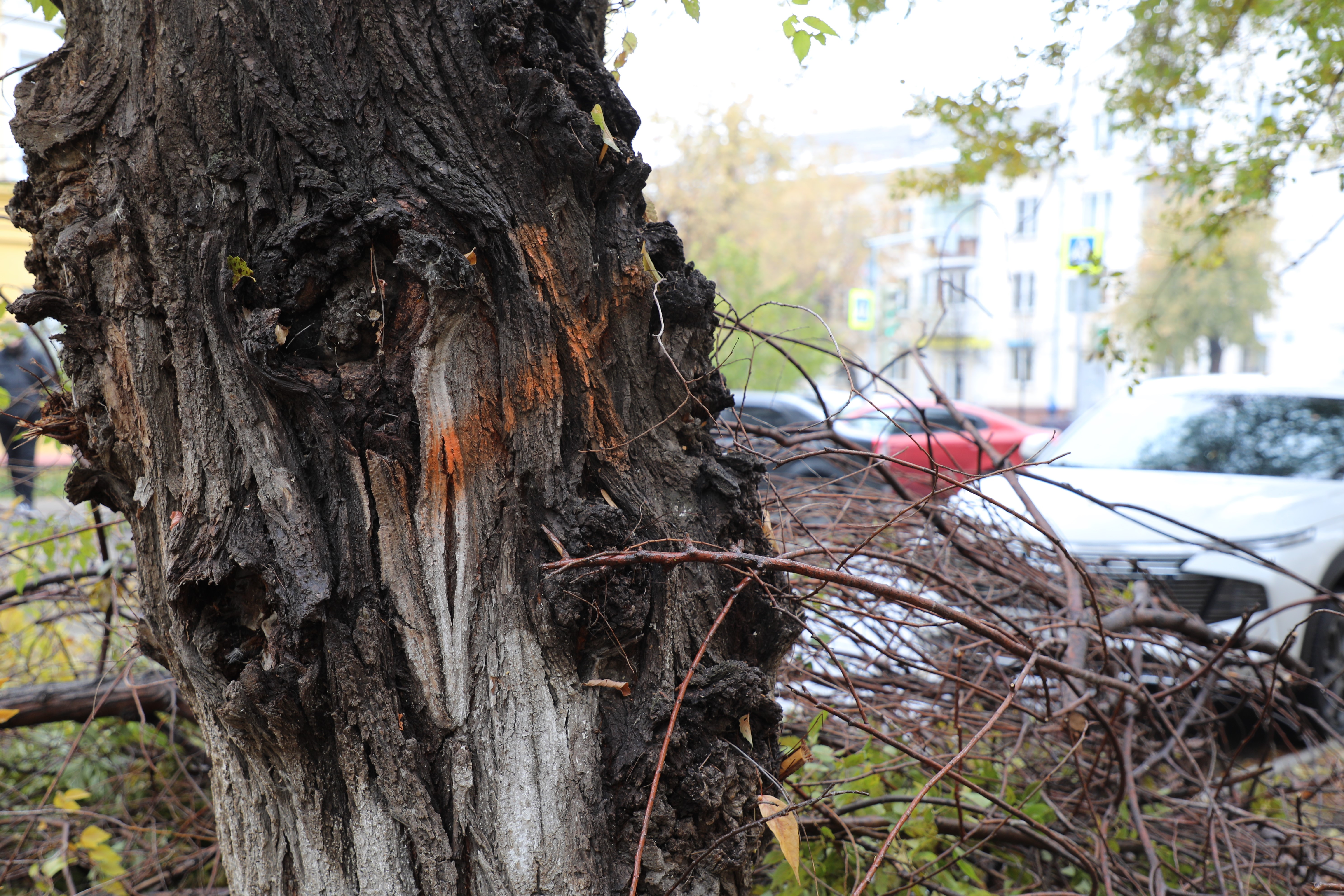 Действительно, внешний вид растений «кричит» о том, что деревья подлежат замене. Стволы имеют признаки усыхания и гниения, а при падении и вовсе рассыпаются.