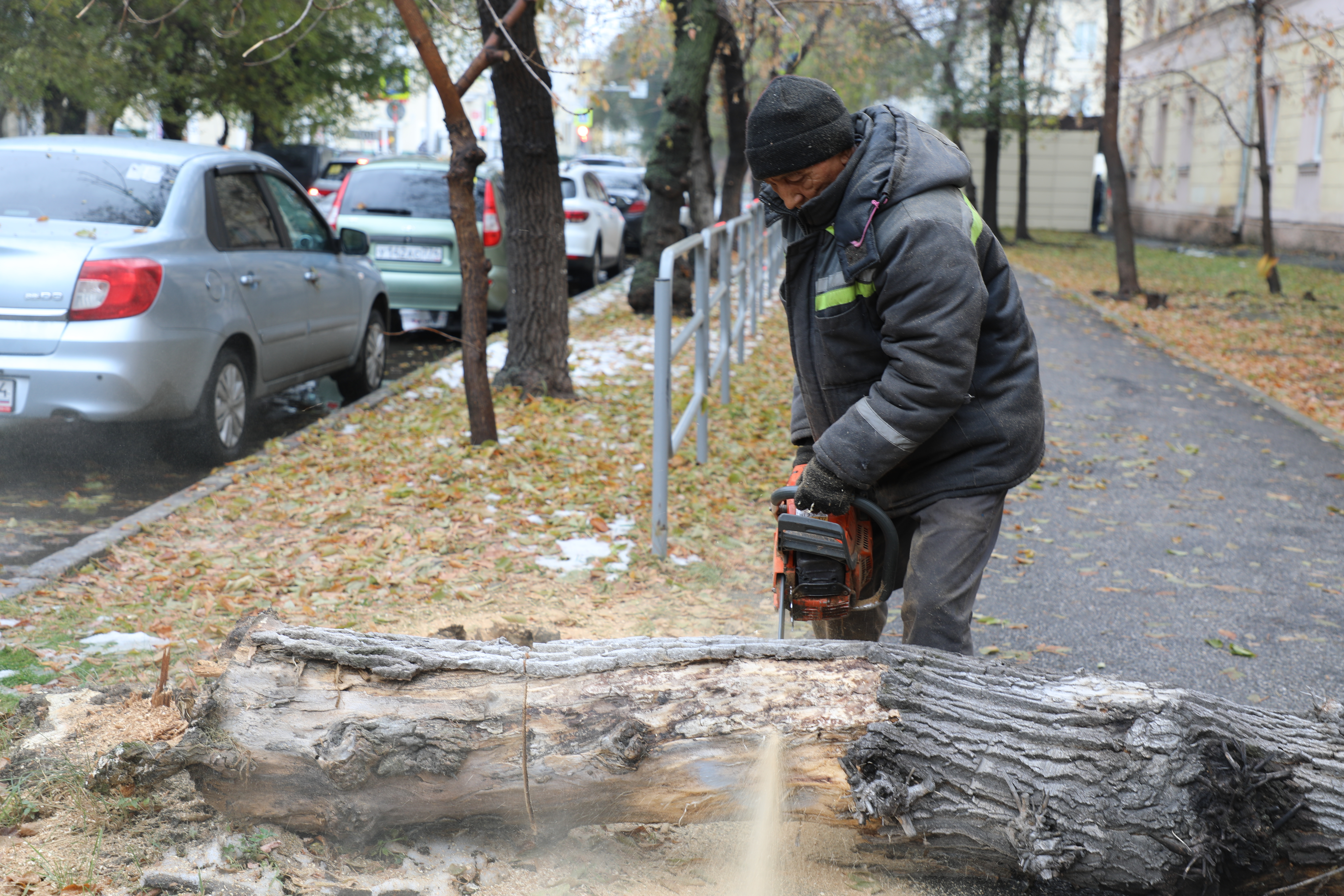 «Эти деревья очень старые, представляют угрозу для жителей, рано или поздно могут рухнуть. Сейчас срубили дерево, оно трухлявое, падает и ломается тут же».