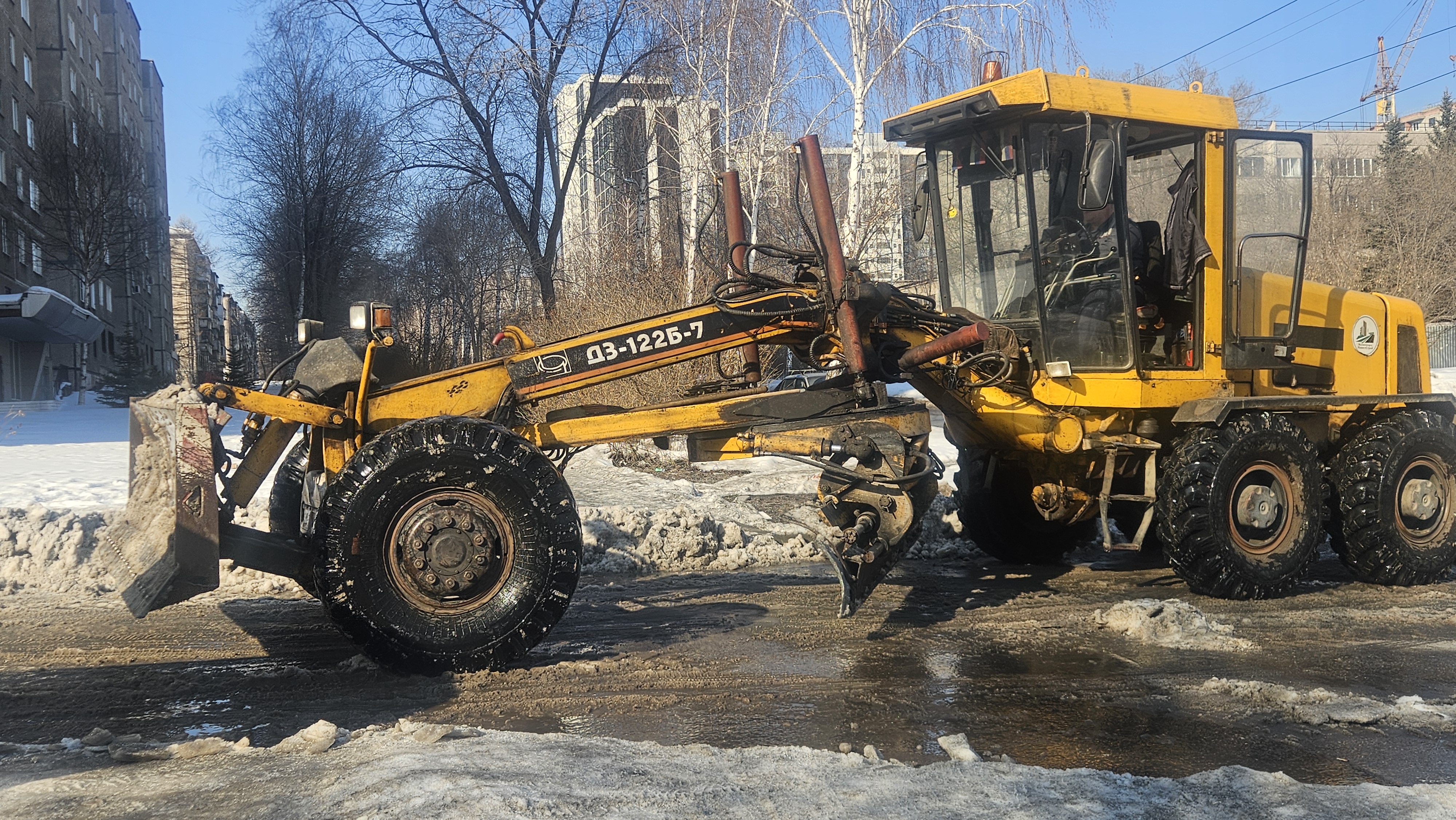 Плюсовые температуры привели к таянию снега. На дорогах образовалась снежная каша, что добавило хлопот дорожным службам.